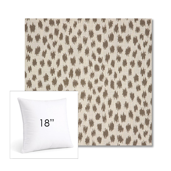 Custom 18" square outdoor pillows available in over 700 Sunbrella® fabrics. Choose piping or knife-edge finish with optional covered button detail. Each pillow includes a zipper opening and premium outdoor insert for comfort, durability, and long-lasting outdoor performance.