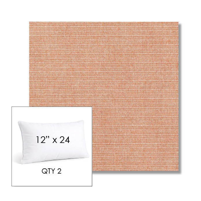 Custom 12" x 24" Lumbar Pillow SET OF TWO, square outdoor pillows available in over 700 Sunbrella® fabrics. Choose piping or knife-edge finish with optional covered button detail. Each pillow includes a zipper opening and premium outdoor insert for comfort, durability, and long-lasting outdoor performance.