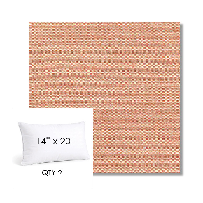 Custom 14" x 20" Lumbar Pillows - SET OF 2 square outdoor pillows available in over 700 Sunbrella® fabrics. Choose piping or knife-edge finish with optional covered button detail. Each pillow includes a zipper opening and premium outdoor insert for comfort, durability, and long-lasting outdoor performance.