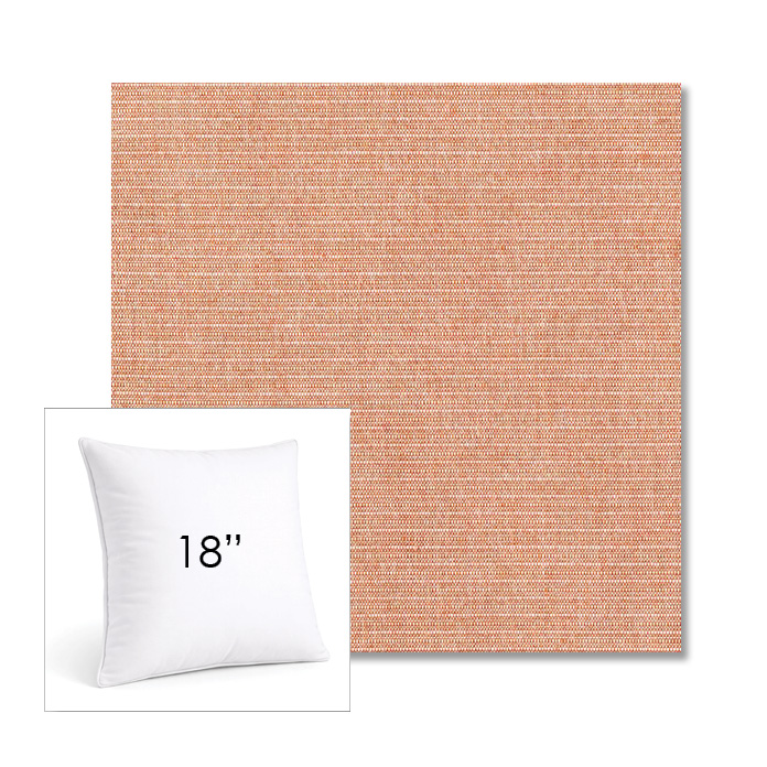 Custom 18" square outdoor pillows available in over 700 Sunbrella® fabrics. Choose piping or knife-edge finish with optional covered button detail. Each pillow includes a zipper opening and premium outdoor insert for comfort, durability, and long-lasting outdoor performance.