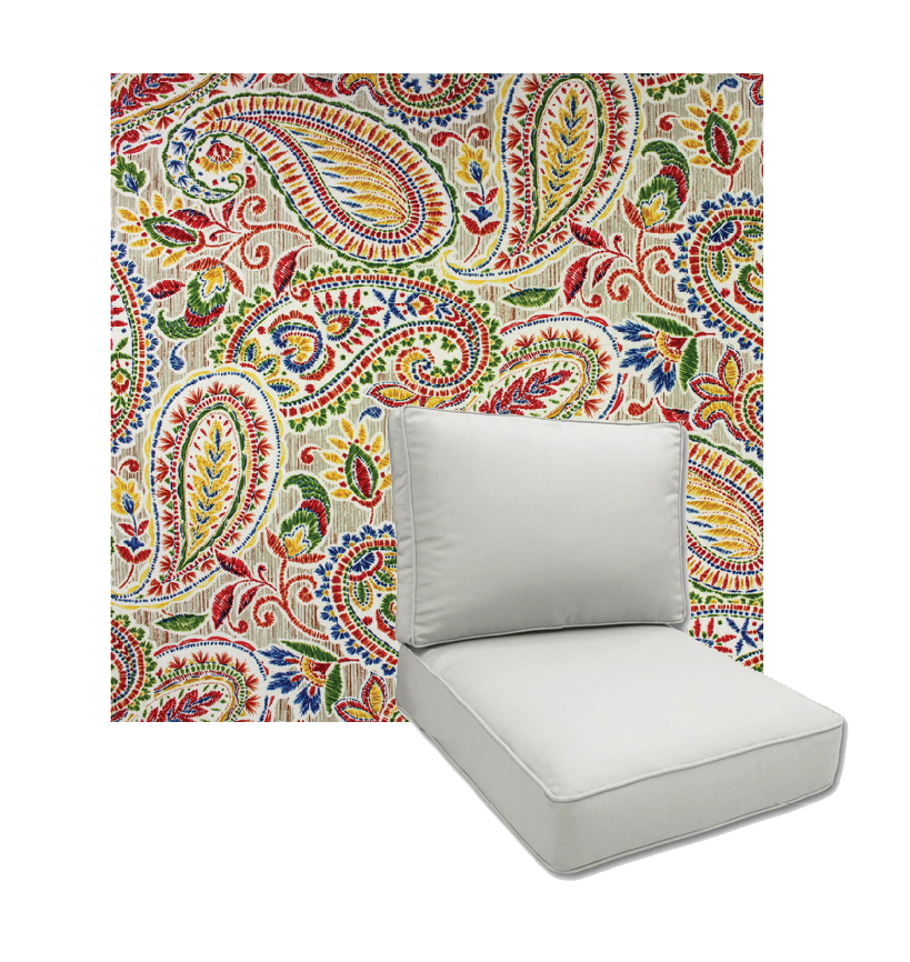 Looking for fun and colorful outdoor fabrics for your patio chairs, loveseats and sofas? Order replacement cushions in Richloom Solarium Outdoor Fabrics. - Choose from 4 common sizes to fit most styles of deep seating patio furniture. This cushion is boxed, double piped with outdoor foam and fiber.