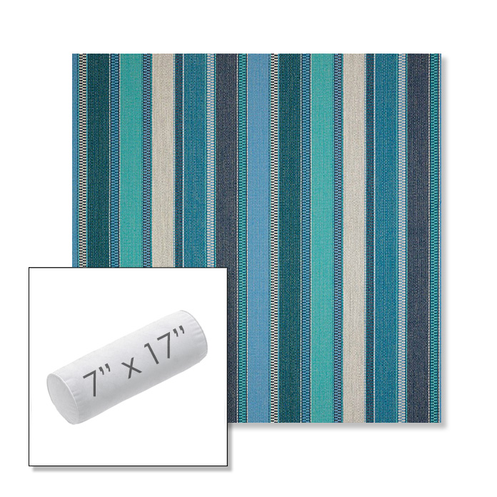 Custom 7" x 17" Outdoor Bolster Pillow Sunbrella® Fabric. Available in over 700 Sunbrella® fabrics. Comes standard with piping. Each pillow includes a zipper opening and premium outdoor insert for comfort, durability, and long-lasting outdoor performance.