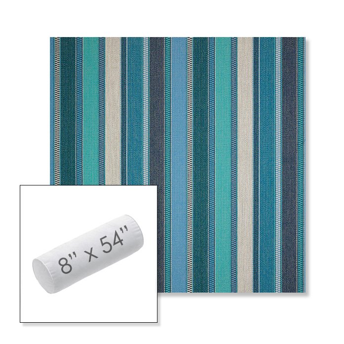 Custom 8" x 54" Outdoor Bolster Pillow Sunbrella® Fabric. Available in over 700 Sunbrella® fabrics. Comes standard with piping. Each pillow includes a zipper opening and premium outdoor insert for comfort, durability, and long-lasting outdoor performance.