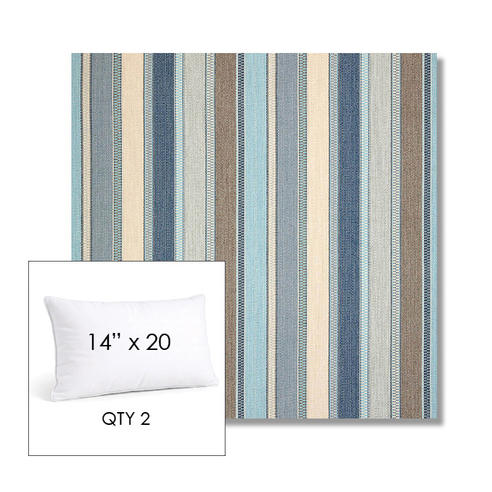 Custom 14" x 20" Lumbar Pillows - SET OF 2 square outdoor pillows available in over 700 Sunbrella® fabrics. Choose piping or knife-edge finish with optional covered button detail. Each pillow includes a zipper opening and premium outdoor insert for comfort, durability, and long-lasting outdoor performance.