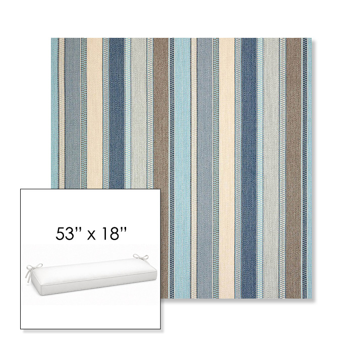 53" outdoor bench cushion designed for a simple, ready-to-order fit. Features a boxed construction with piping, fabric ties, and zipper opening. Made in 700+ Sunbrella® fabrics for long-lasting outdoor performance.