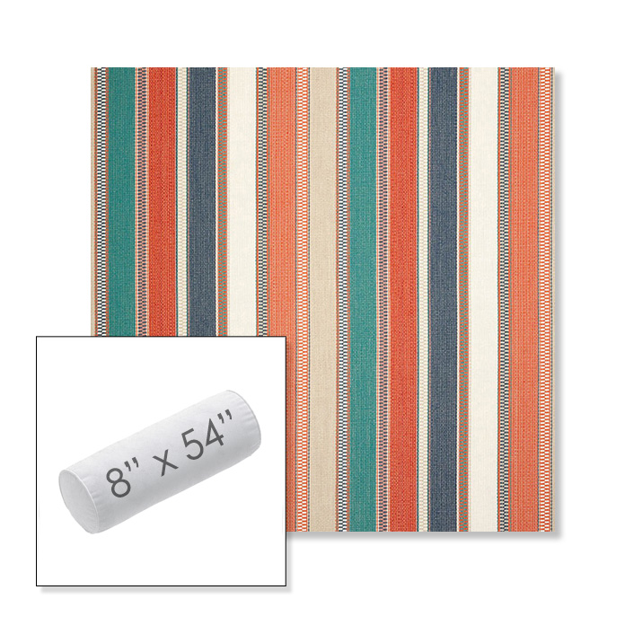 Custom 8" x 54" Outdoor Bolster Pillow Sunbrella® Fabric. Available in over 700 Sunbrella® fabrics. Comes standard with piping. Each pillow includes a zipper opening and premium outdoor insert for comfort, durability, and long-lasting outdoor performance.
