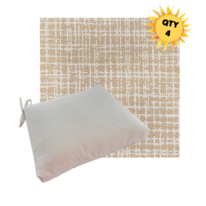 Each cushion is available in 4 universal sizes so you can choose the best fit for your existing outdoor dining furniture. A generous set of fabric ties keeps the cushion securely in place, even when people shift and move during meals. The interior features a combination of outdoor-rated foam and plush polyester fiber, creating a seat that feels soft yet supportive and holds its shape over time.