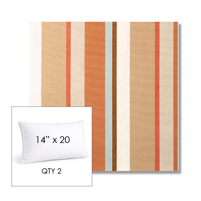 Custom 14" x 20" Lumbar Pillows - SET OF 2 square outdoor pillows available in over 700 Sunbrella® fabrics. Choose piping or knife-edge finish with optional covered button detail. Each pillow includes a zipper opening and premium outdoor insert for comfort, durability, and long-lasting outdoor performance.