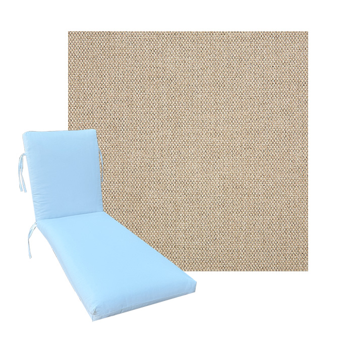 Classic Style Chaise Lounge Cushion. Premium Universal Chaise Lounge Replacement Cushions in 3 common sizes. Simple center seam design. No piping. Designed to accommodate aluminum, wood, and PVC furniture. Includes fabric ties at back and hinge. Polyester/densified fiber fill.