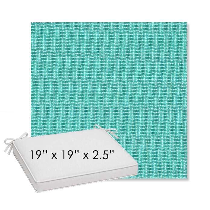 19" x 19" x 2.5" Thick outdoor dining chair seat cushion designed for a simple, ready-to-order fit. Features a boxed construction with piping, fabric ties, and zipper opening. Made in 700+ Sunbrella® fabrics for long-lasting outdoor performance.