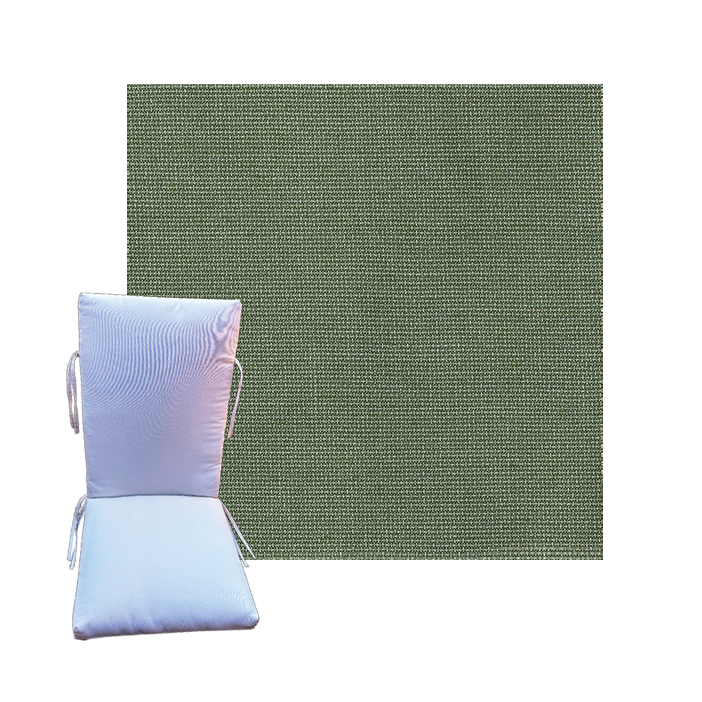 Order universal patio chair cushions in Sunbrella Outdoor Fabrics - Find a new colorful replacement cushion in 9 sizes - This style of patio chair cushion features a center seam, hinged design with fabric ties. These outdoor cushions are custom made to order in the fabric and size you need.