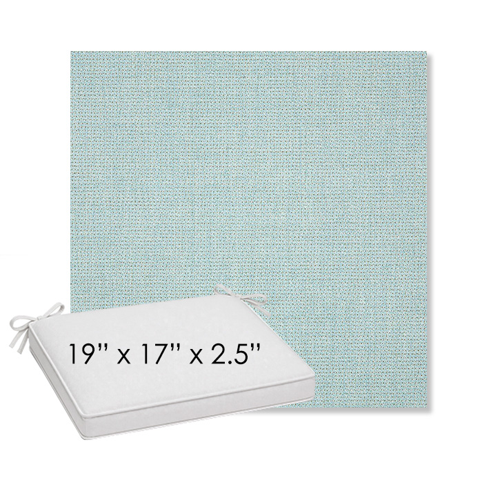 19" x 17" x 2.5" Thick outdoor dining chair seat cushion designed for a simple, ready-to-order fit. Features a boxed construction with piping, fabric ties, and zipper opening. Made in 700+ Sunbrella® fabrics for long-lasting outdoor performance.