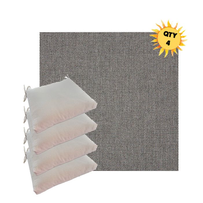 Each cushion is available in 4 universal sizes so you can choose the best fit for your existing outdoor dining furniture. A generous set of fabric ties keeps the cushion securely in place, even when people shift and move during meals. The interior features a combination of outdoor-rated foam and plush polyester fiber, creating a seat that feels soft yet supportive and holds its shape over time.