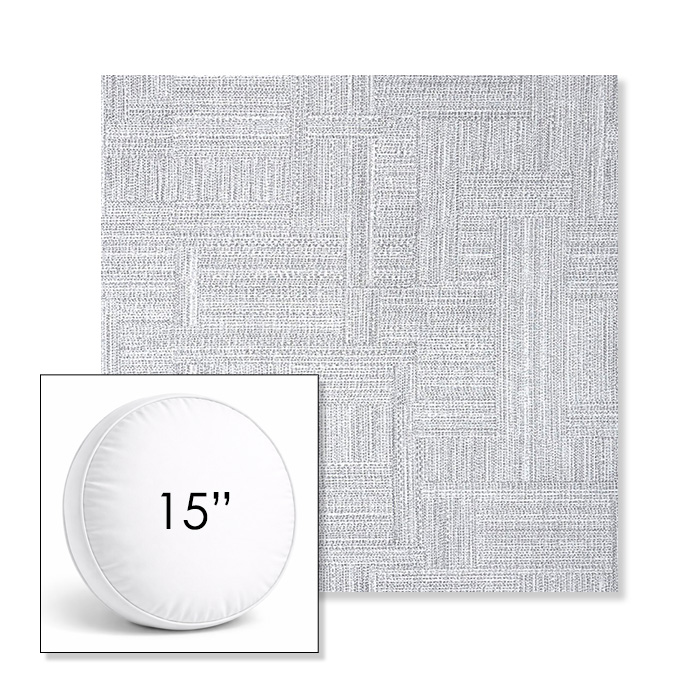 Custom 15" Round Boxed Sunbrella® Outdoor Pillow (3" Thick) available in over 700 Sunbrella® fabrics. Comes standard with piping. Optional covered button detail. Each pillow includes a zipper opening and premium outdoor insert for comfort, durability, and long-lasting outdoor performance.