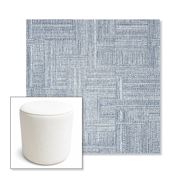 Boro Indigo | 16" Round x 18" Tall Outdoor Pouf or Ottoman | Sunbrella Fabrics