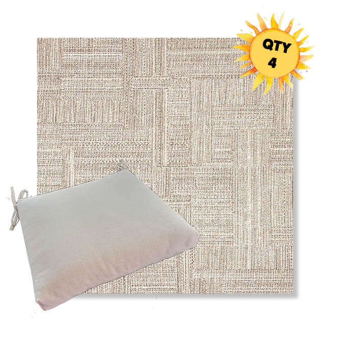 Sunbrella® Luxury Seat Cushions — Bundle of 4 (Custom Made) Upgrade your outdoor dining space with a coordinated set of four luxury Sunbrella® seat cushions, crafted in our most upscale Sunbrella fabric selections. These are made for patios that don’t do “average”—the kind of outdoor setting where every detail feels intentional, elevated, and unmistakably well-designed. Each bundle is custom made to order for a tailored look and feel, with premium construction designed for long-lasting comfort and performance. Choose from four versatile sizes to fit most outdoor dining chair styles, then select a higher-end Sunbrella® fabric that instantly sets your space apart from the run-of-the-mill cushion look.