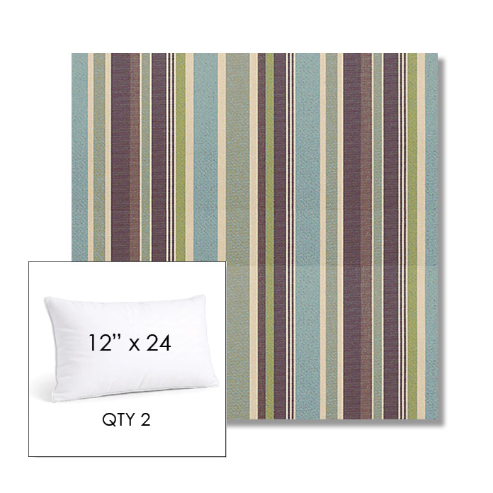 Custom 12" x 24" Lumbar Pillow SET OF TWO, square outdoor pillows available in over 700 Sunbrella® fabrics. Choose piping or knife-edge finish with optional covered button detail. Each pillow includes a zipper opening and premium outdoor insert for comfort, durability, and long-lasting outdoor performance.