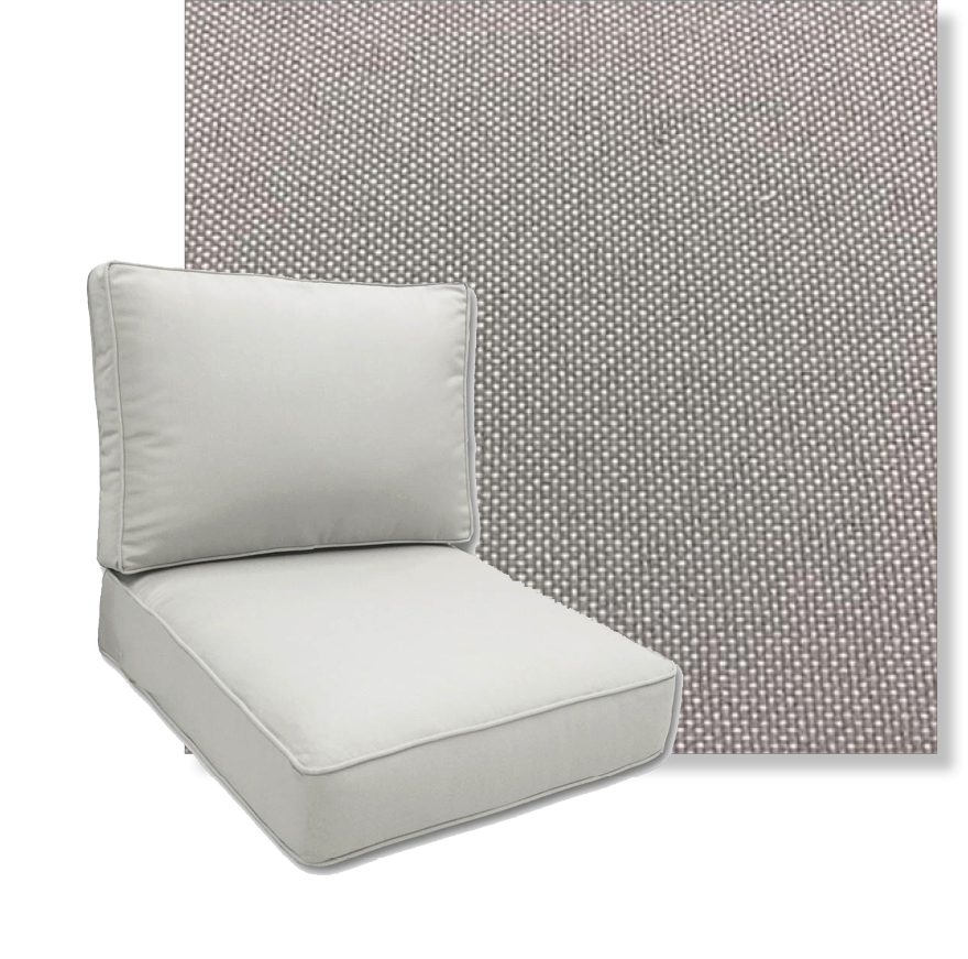 Custom deep seating replacement cushions in Hayden Taupe Revolution Performance Fabrics. Available in four popular sizes, these boxed, double-piped cushions are designed to fit most styles of deep seating outdoor patio furniture. Order multiples to create a coordinated loveseat or sofa cushion set for your outdoor seating area. All custom outdoor cushions are made to order in the fabric and size of your choice. Revolution performance fabrics are made in the USA and so are your new patio cushions from Cascadia Outdoor Cushions