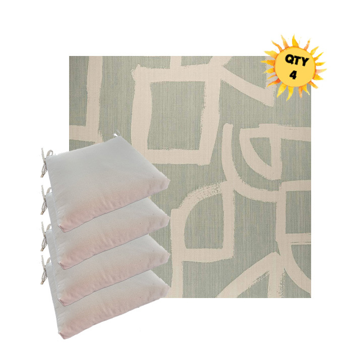 Each cushion is available in 4 universal sizes so you can choose the best fit for your existing outdoor dining furniture. A generous set of fabric ties keeps the cushion securely in place, even when people shift and move during meals. The interior features a combination of outdoor-rated foam and plush polyester fiber, creating a seat that feels soft yet supportive and holds its shape over time.