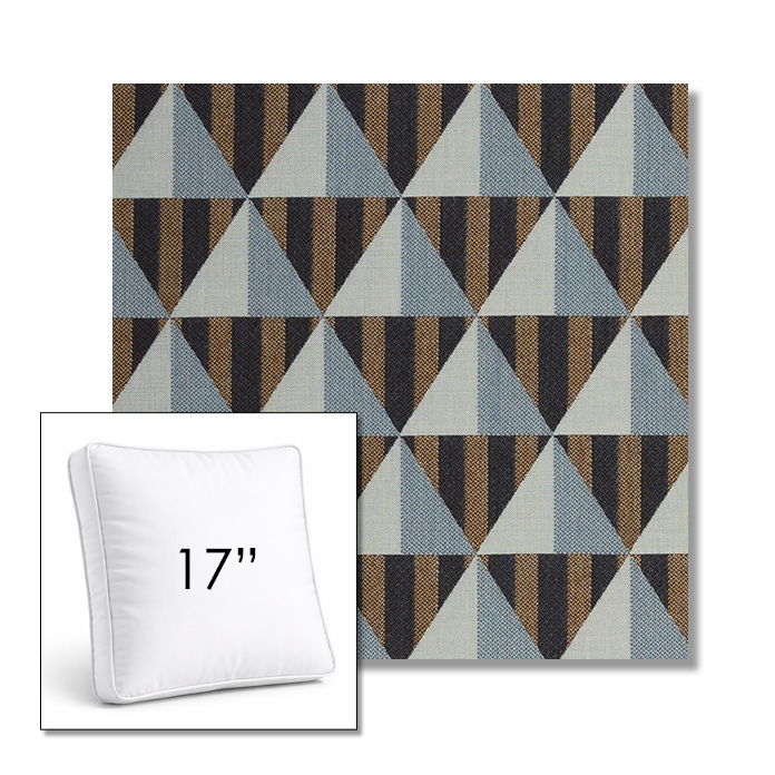 Custom 17" Square Boxed Sunbrella® Outdoor Pillow (3" Thick) available in over 700 Sunbrella® fabrics. Comes standard with piping. Optional covered button detail. Each pillow includes a zipper opening and premium outdoor insert for comfort, durability, and long-lasting outdoor performance.