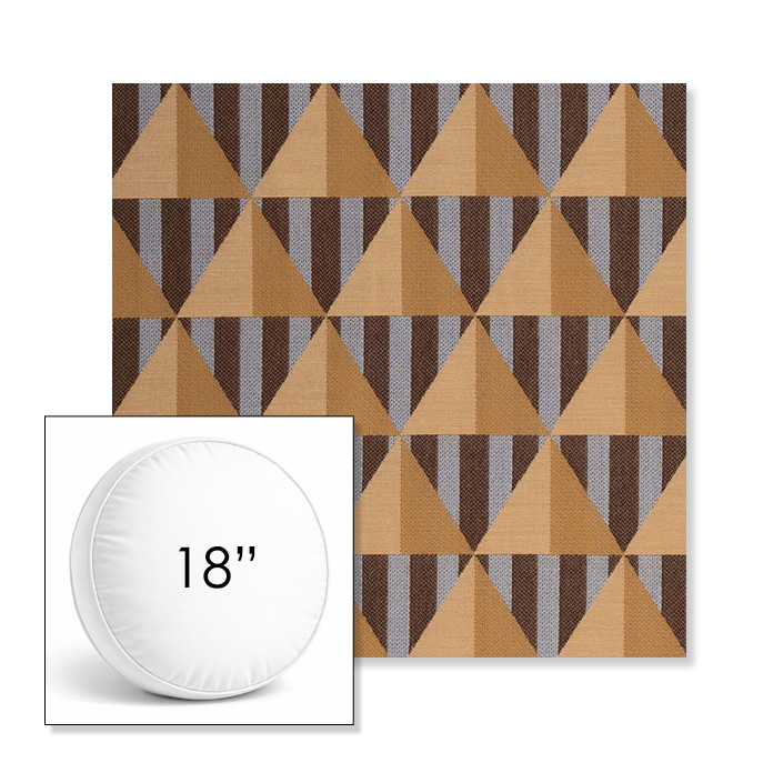 Custom 18" Round Boxed Sunbrella® Outdoor Pillow (3" Thick) available in over 700 Sunbrella® fabrics. Comes standard with piping. Optional covered button detail. Each pillow includes a zipper opening and premium outdoor insert for comfort, durability, and long-lasting outdoor performance.