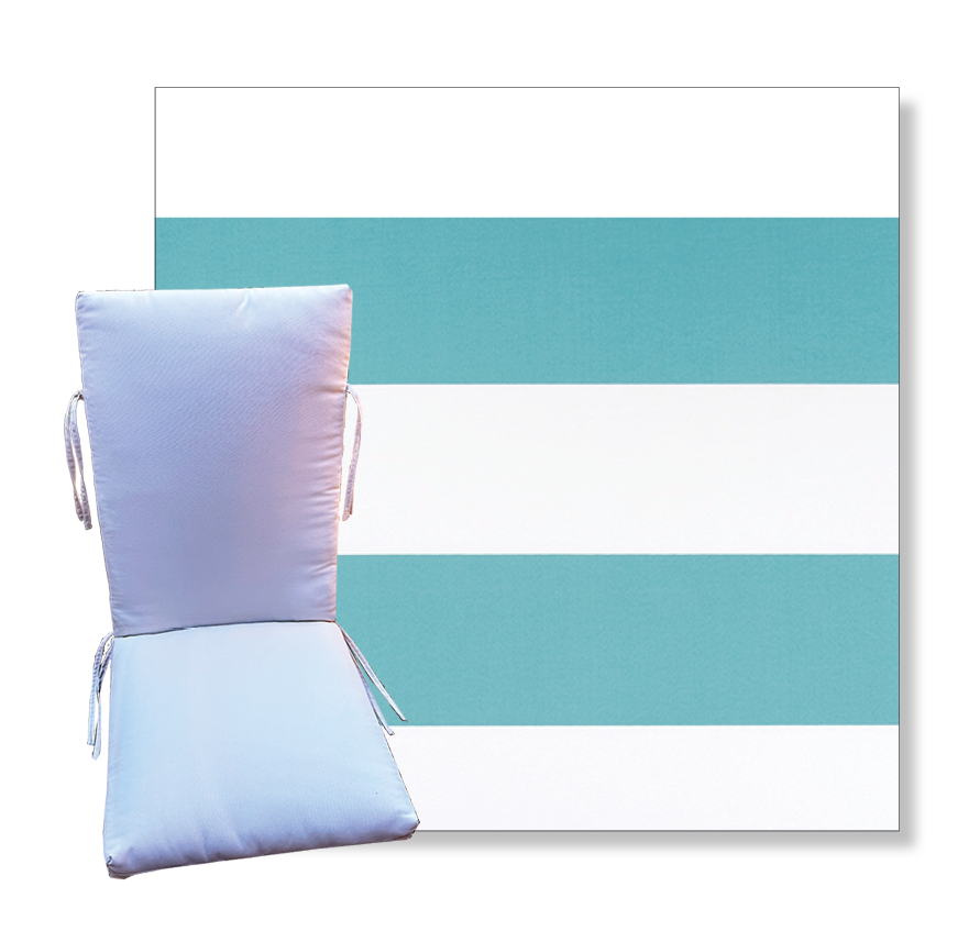 Universal patio chair cushions in Premier Prints Outdoor Fabrics - Find a new colorful replacement cushion in 9 sizes - This style of patio chair cushion features a center seam, hinged design with fabric ties. These outdoor cushions are custom made to order in the fabric and size you need.