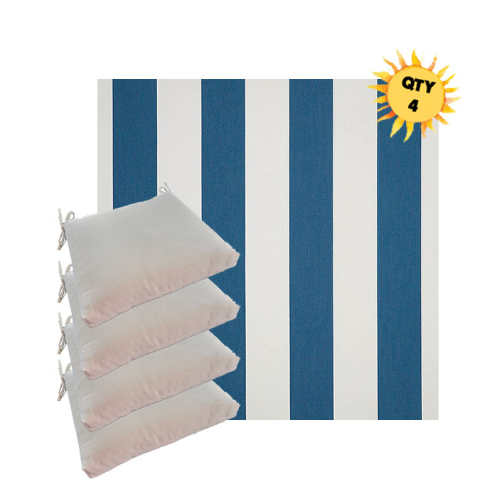Sunbrella® Outdoor Dining Chair Seat Cushions — Bundle of 4 (Custom Made) Upgrade your outdoor dining space with a coordinated set of four luxury Sunbrella® seat cushions, crafted in our most upscale Sunbrella fabric selections. These are made for patios that don’t do “average”—the kind of outdoor setting where every detail feels intentional, elevated, and unmistakably well-designed. Each bundle is custom made to order for a tailored look and feel, with premium construction designed for long-lasting comfort and performance. Choose from four versatile sizes to fit most outdoor dining chair styles, then select a higher-end Sunbrella® fabric that instantly sets your space apart from the run-of-the-mill cushion look.