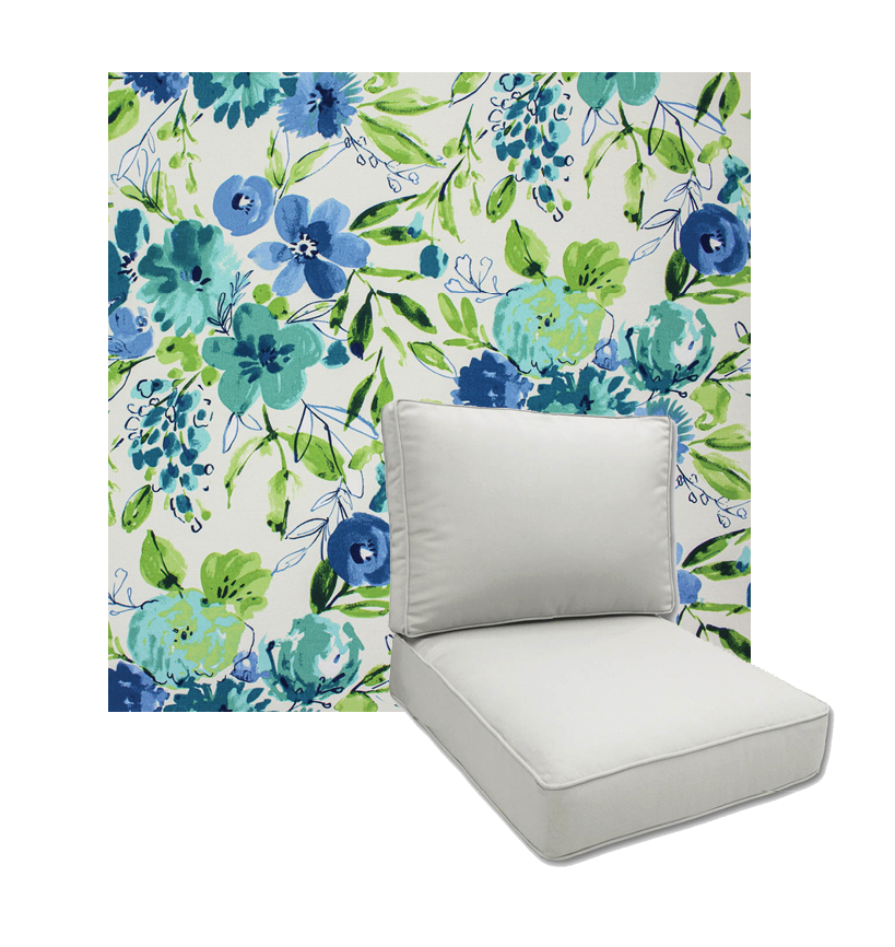 Our Easy order deep seating replacement cushion come in 4 common sizes and in beautiful outfoor printed polyester fabrics from Richloom Solarium..