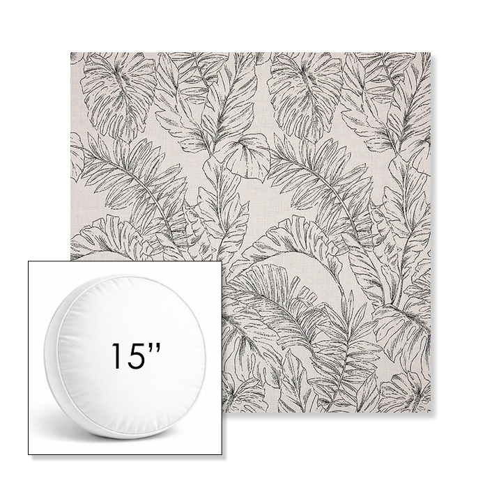 Custom 15" Round Boxed Sunbrella® Outdoor Pillow (3" Thick) available in over 700 Sunbrella® fabrics. Comes standard with piping. Optional covered button detail. Each pillow includes a zipper opening and premium outdoor insert for comfort, durability, and long-lasting outdoor performance.