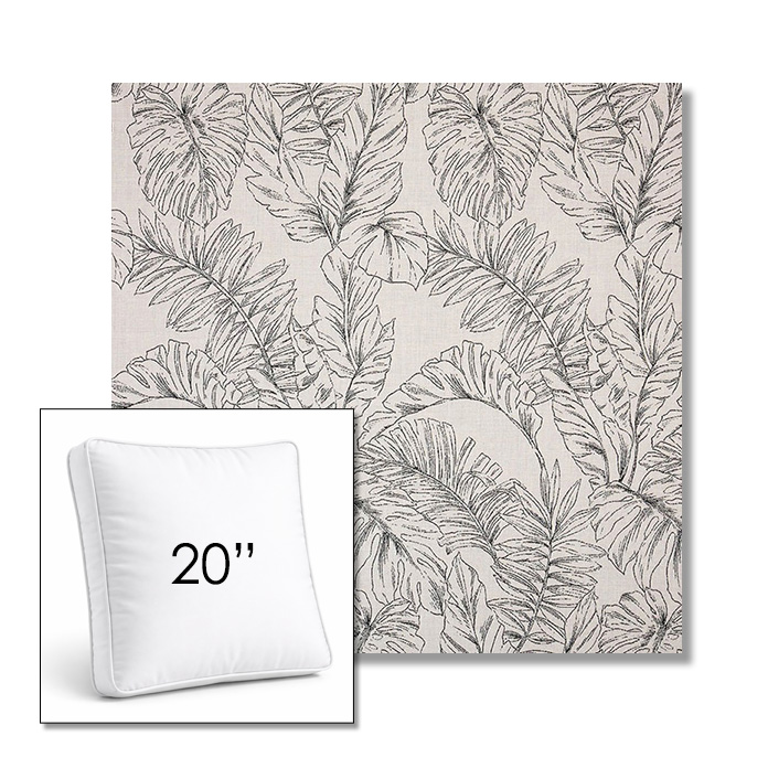 Custom 20" Square Boxed Sunbrella® Outdoor Pillow (3" Thick) available in over 700 Sunbrella® fabrics. Comes standard with piping. Optional covered button detail. Each pillow includes a zipper opening and premium outdoor insert for comfort, durability, and long-lasting outdoor performance.