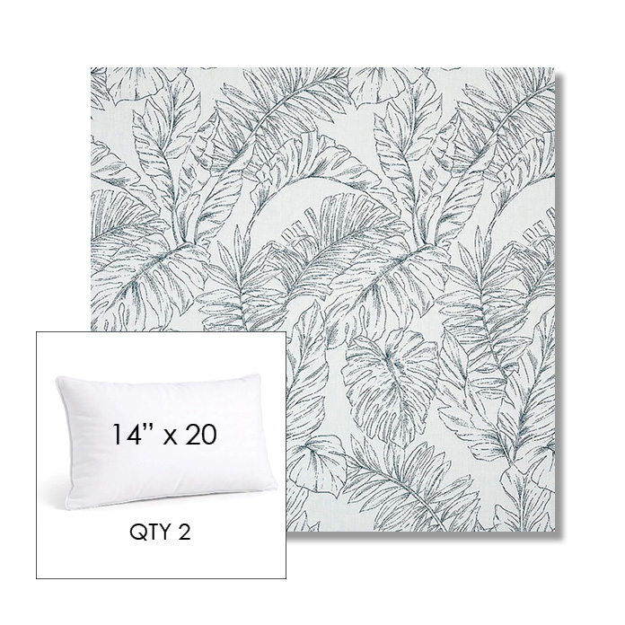 Custom 14" x 20" Lumbar Pillows - SET OF 2 square outdoor pillows available in over 700 Sunbrella® fabrics. Choose piping or knife-edge finish with optional covered button detail. Each pillow includes a zipper opening and premium outdoor insert for comfort, durability, and long-lasting outdoor performance.