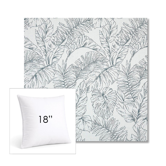 Custom 18" square outdoor pillows available in over 700 Sunbrella® fabrics. Choose piping or knife-edge finish with optional covered button detail. Each pillow includes a zipper opening and premium outdoor insert for comfort, durability, and long-lasting outdoor performance.