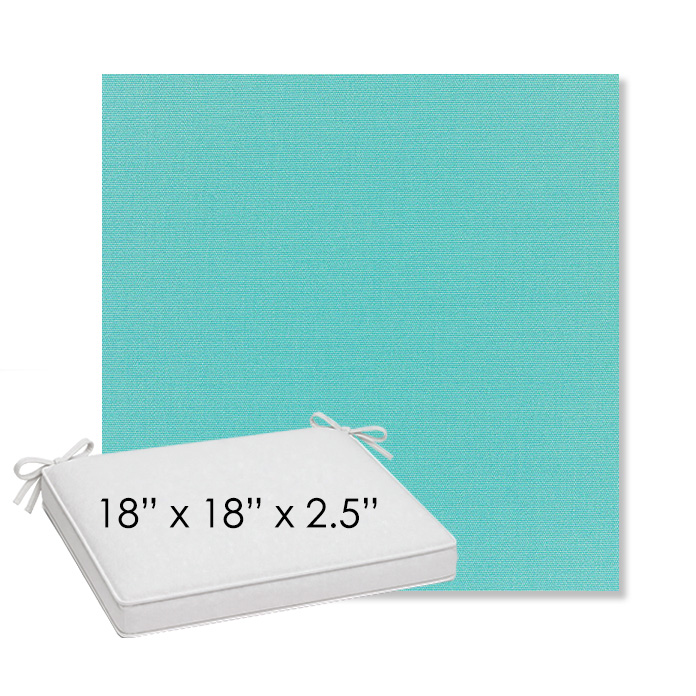 18" x 18" x 2.5" Thick outdoor dining chair seat cushion designed for a simple, ready-to-order fit. Features a boxed construction with piping, fabric ties, and zipper opening. Made in 700+ Sunbrella® fabrics for long-lasting outdoor performance.