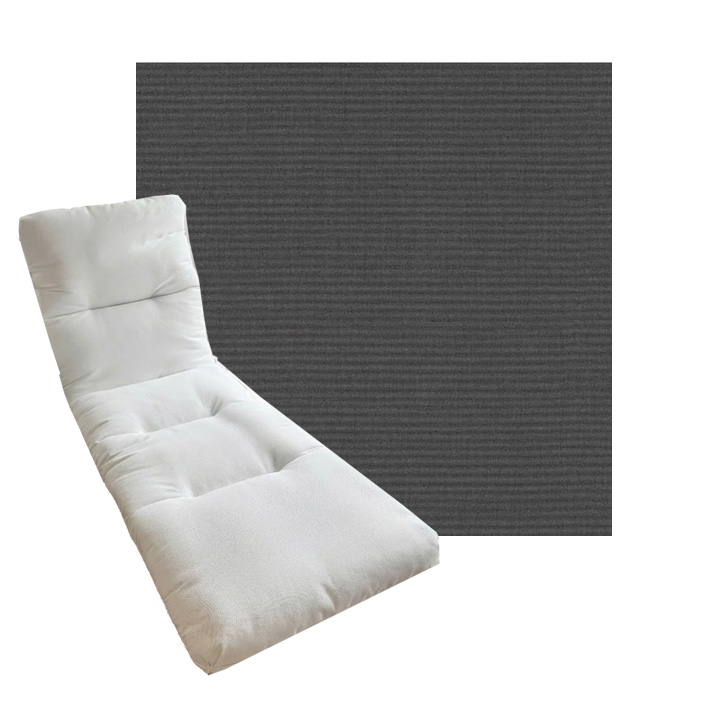 Tufted Style Chaise Lounge Cushion. Universal Chaise Lounge Replacement Cushions in 3 common sizes. Simple center seam design. No piping. Designed to accommodate aluminum, wood, and PVC furniture. Includes fabric ties at back and hinge. Polyester/densified fiber fill.