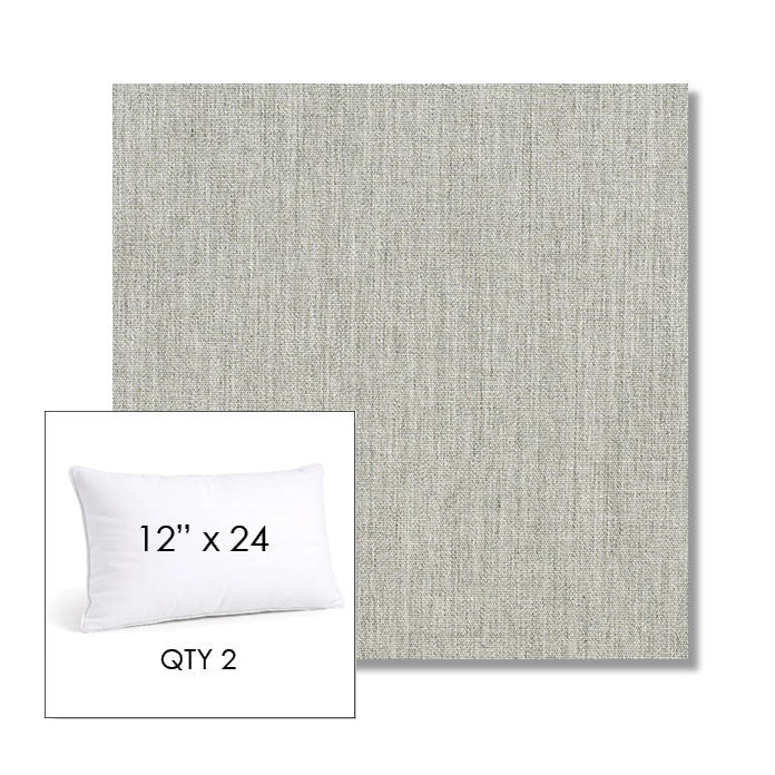 Custom 12" x 24" Lumbar Pillow SET OF TWO, square outdoor pillows available in over 700 Sunbrella® fabrics. Choose piping or knife-edge finish with optional covered button detail. Each pillow includes a zipper opening and premium outdoor insert for comfort, durability, and long-lasting outdoor performance.