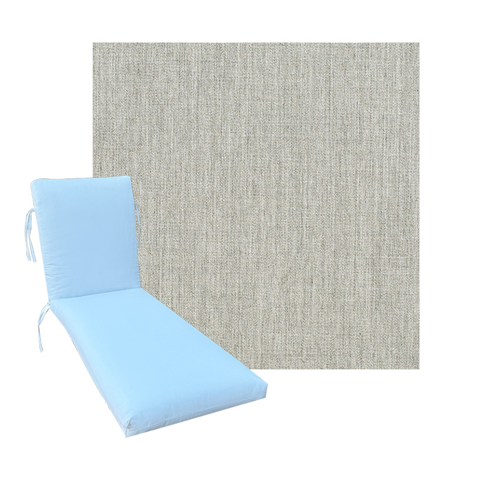 Classic Style Chaise Lounge Cushion. Premium Universal Chaise Lounge Replacement Cushions in 3 common sizes. Simple center seam design. No piping. Designed to accommodate aluminum, wood, and PVC furniture. Includes fabric ties at back and hinge. Polyester/densified fiber fill.