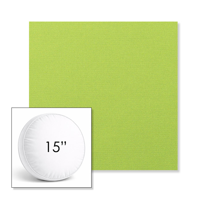 Custom 15" Round Boxed Sunbrella® Outdoor Pillow (3" Thick) available in over 700 Sunbrella® fabrics. Comes standard with piping. Optional covered button detail. Each pillow includes a zipper opening and premium outdoor insert for comfort, durability, and long-lasting outdoor performance.