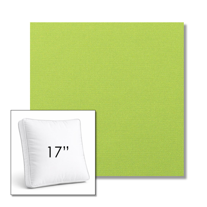 Custom 17" Square Boxed Sunbrella® Outdoor Pillow (3" Thick) available in over 700 Sunbrella® fabrics. Comes standard with piping. Optional covered button detail. Each pillow includes a zipper opening and premium outdoor insert for comfort, durability, and long-lasting outdoor performance.