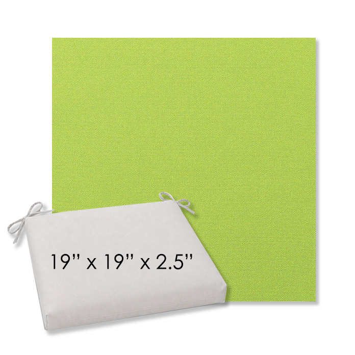 19" x 19" x 2.5" Thick - Universal outdoor dining chair seat cushion in Sunbrella Solution Dyed Polyester Outdoor Fabrics. Features with generous fabric ties and outdoor foam with polyester fiber fill—perfect for most patio dining chairs. Each Outdoor Patio Dining Chair Cushion is a center seam design and 2.5" Thick. All patio dining chair cushions are custom made to order in the size and fabric of your choice.