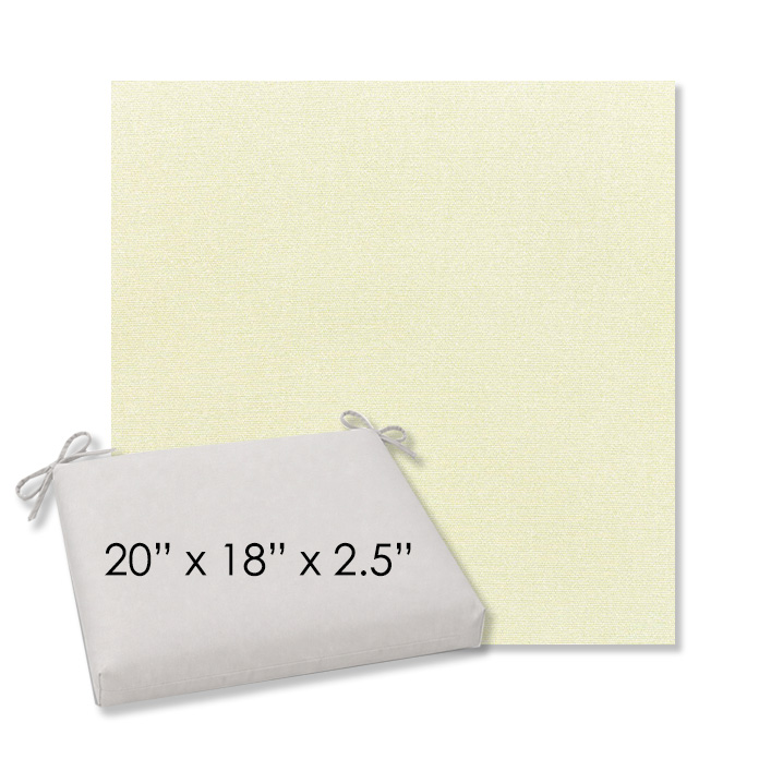 20" x 18" x 2.5" Thick - Universal outdoor dining chair seat cushion in Sunbrella Solution Dyed Polyester Outdoor Fabrics. Features with generous fabric ties and outdoor foam with polyester fiber fill—perfect for most patio dining chairs. Each Outdoor Patio Dining Chair Cushion is a center seam design and 2.5" Thick. All patio dining chair cushions are custom made to order in the size and fabric of your choice.