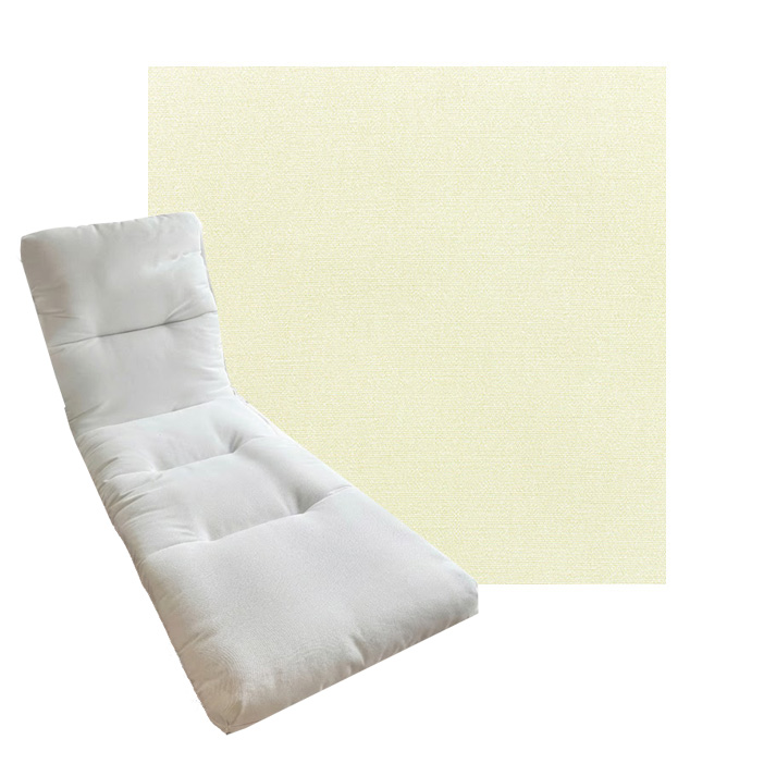 Tufted Style Chaise Lounge Cushion. Universal Chaise Lounge Replacement Cushions in 3 common sizes. Simple center seam design. No piping. Designed to accommodate aluminum, wood, and PVC furniture. Includes fabric ties at back and hinge. Polyester/densified fiber fill.