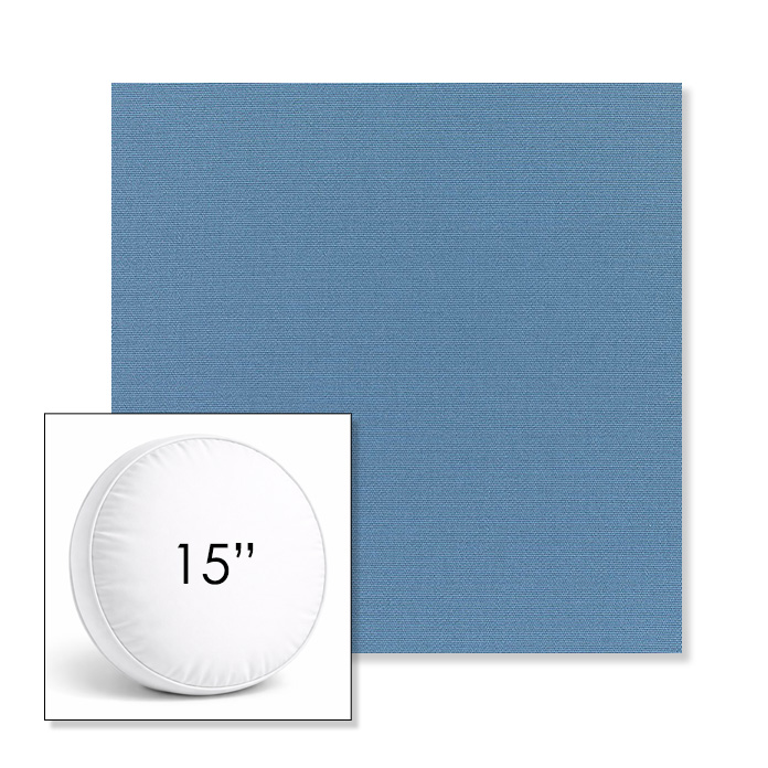 Custom 15" Round Boxed Sunbrella® Outdoor Pillow (3" Thick) available in over 700 Sunbrella® fabrics. Comes standard with piping. Optional covered button detail. Each pillow includes a zipper opening and premium outdoor insert for comfort, durability, and long-lasting outdoor performance.