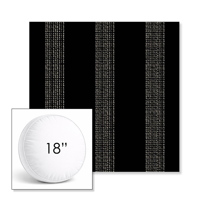 Custom 18" Round Boxed Sunbrella® Outdoor Pillow (3" Thick) available in over 700 Sunbrella® fabrics. Comes standard with piping. Optional covered button detail. Each pillow includes a zipper opening and premium outdoor insert for comfort, durability, and long-lasting outdoor performance.