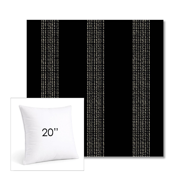 Custom 20" square outdoor pillows available in over 700 Sunbrella® fabrics. Choose piping or knife-edge finish with optional covered button detail. Each pillow includes a zipper opening and premium outdoor insert for comfort, durability, and long-lasting outdoor performance.