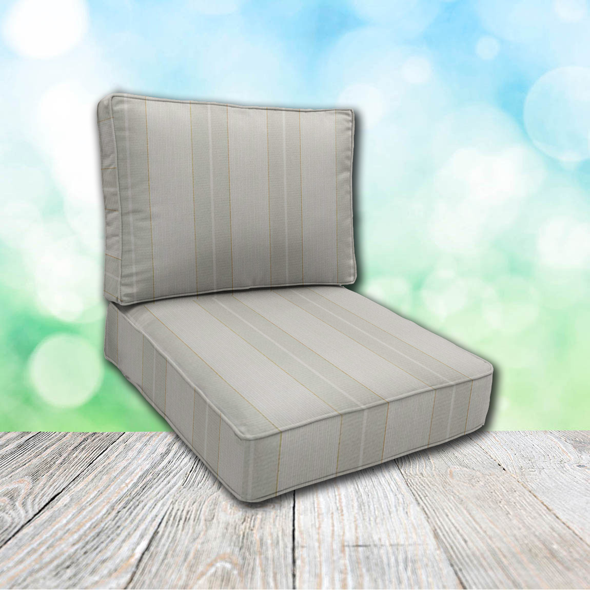 Order outdoor chair cushions in widths from 24" to 26" wide