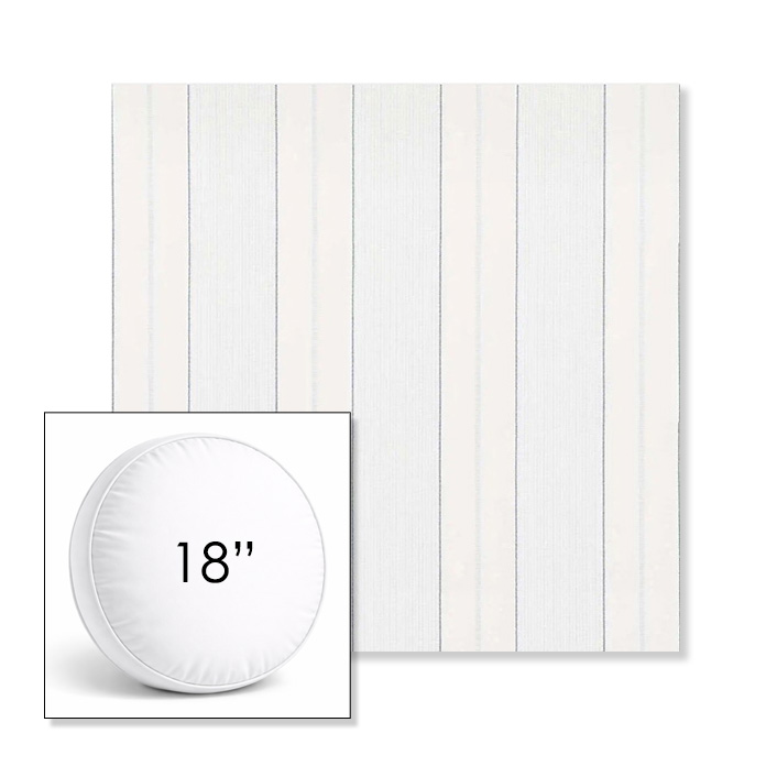 Custom 18" Round Boxed Sunbrella® Outdoor Pillow (3" Thick) available in over 700 Sunbrella® fabrics. Comes standard with piping. Optional covered button detail. Each pillow includes a zipper opening and premium outdoor insert for comfort, durability, and long-lasting outdoor performance.