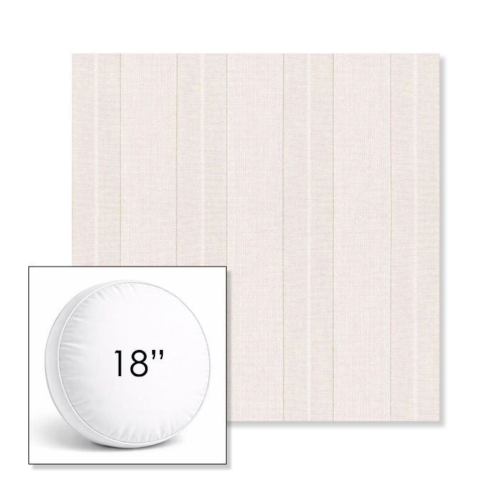 Custom 18" Round Boxed Sunbrella® Outdoor Pillow (3" Thick) available in over 700 Sunbrella® fabrics. Comes standard with piping. Optional covered button detail. Each pillow includes a zipper opening and premium outdoor insert for comfort, durability, and long-lasting outdoor performance.