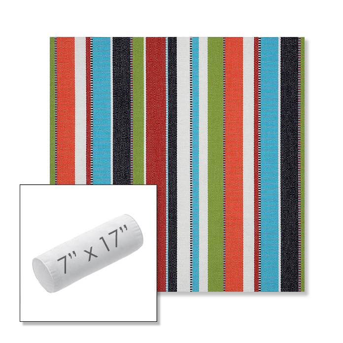 Custom 7" x 17" Outdoor Bolster Pillow Sunbrella® Fabric. Available in over 700 Sunbrella® fabrics. Comes standard with piping. Each pillow includes a zipper opening and premium outdoor insert for comfort, durability, and long-lasting outdoor performance.