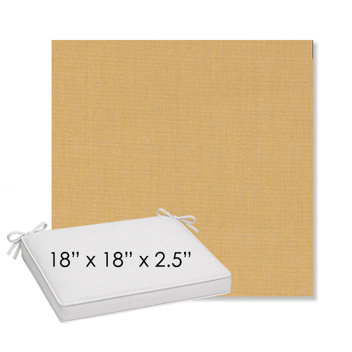 Upgrade your outdoor dining chair seating with our 18" wide x 18" deep x 2.5" thick outdoor dining chair pad or cushion designed for a clean, tailored fit and effortless ordering. Built in a structured boxed style with piping and fabric ties, this cushion delivers both comfort and durability for everyday outdoor living. Whether you're replacing an existing cushion or refreshing your outdoor dining space, this size is ideal for all styles of outdoor patio dining chairs.