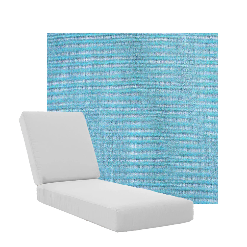 Boxed Chaise Lounge Cushions in Sunbrella Fabrics. Separate Seat and Back Cushions. Available in 3 sizes to fit a variety of outdoor furniture styles. Our boxed Chaise Lounge Cushions feature foam and fiber, piping and zipper openings. All chaise lounge replacement cushions are custom made to order in your choice of fabric and size. Made in the USA. Lead times may vary depending on the time of year.